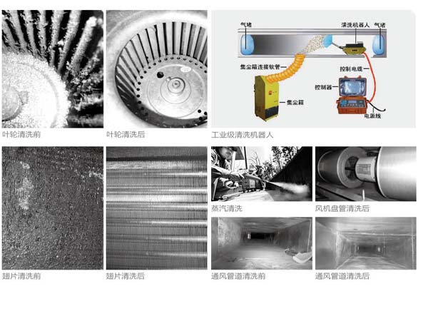 • 產品介紹:   通風系統為什么要定期清洗?     隨著空調使用年限的增加,通風系統內 (管道、風機盤管的翅片、渦輪電機的扇 (管道、風機盤管的翅片、渦輪電機的扇葉、新風機組換熱板翅片、空 ...